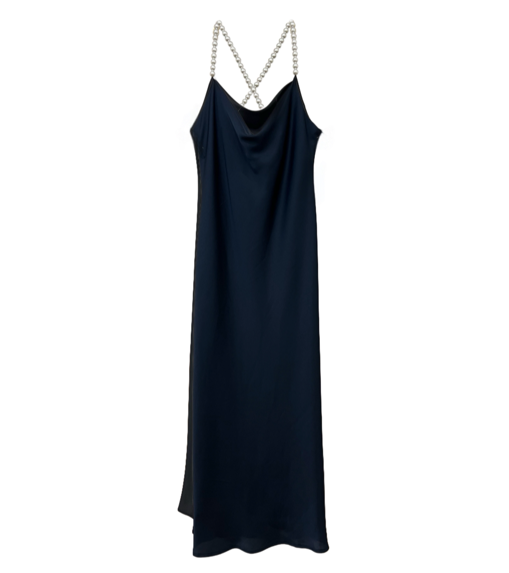 Abito in satin prodotto in Italia. Un abito scivolato e sinuoso tg unica in grado di vestire da una XS ad una L per enfatizzare la vostra femminilità e farvi sentire meravigliose, la lavorazione delle spalline (in perle sintetiche per abbigliamento) vi consentirà di indossare l'abito in tre varianti differenti. Spallina dritta, incrociata davanti e monospalla ma sarà possibile giocare anche con la scollatura sul retro creando i medesimi effetti. Un abito scivolato da indossare per ogni occasione, dagli aperitivi al mare al tramonto fino ai vostri eventi più importanti. Pensato per essere indossato anche dalle testimoni/ damigelle per la sua versatilità, regalando ad ognuna di loro la possibilità di personalizzare lo scollo con le spalline di perle creando look differenti con un unico abito.
